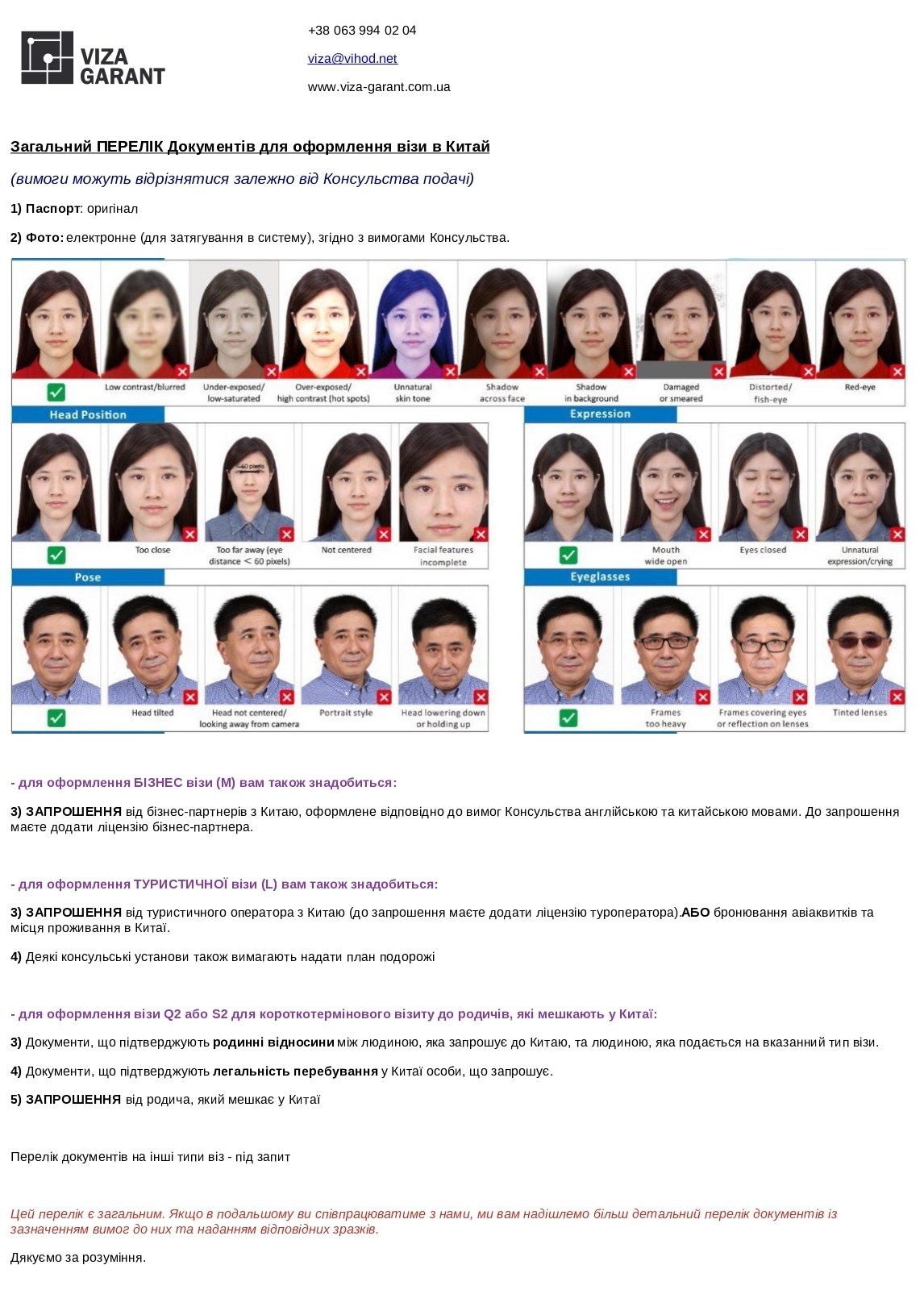 !!! Навіть за умови наявності візи в Китай, перед поїздкою ви повинні зареєструвати вашу подорож !!!;